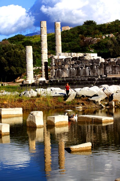 Letoon: According to a story told by poet Ovidius, the city is founded in the name of Leto who got pregnant by Zeus. The oldest settlement in the city goes back to 7th century BC. Ruins and inscriptions show that this area is a religious and politic area. There are three temples side by side at the center of the ruins. The one located at the northernmost side is dedicated to Leto; the southern one is dedicated to Artemis and the southern one is dedicated to Apollo. At the southwest of these temples there is a fountain and at the east there is a church. There is a Stoa and a theatre belonging to the ancient period which is located at the partly natural slope at the north of the city. Letoon has been abandoned at 7th century AD.